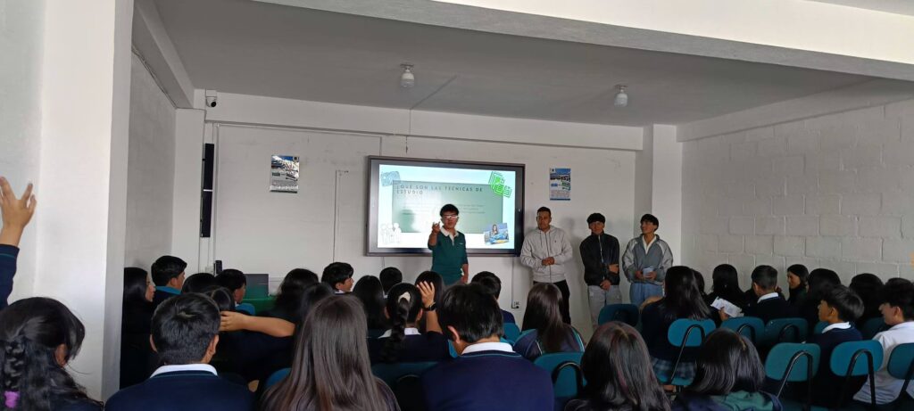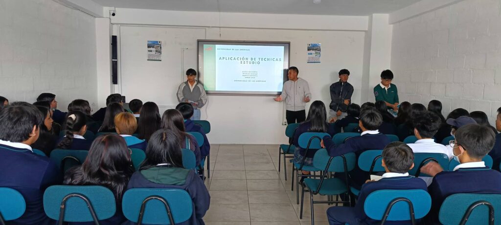 Los estudiantes de 9.º año participaron en un taller sobre “Métodos de estudio: fragmentación y dificultad deseable”, impartido por estudiantes de la UDLA, entre ellos nuestro exestudiante Martín Espinosa.